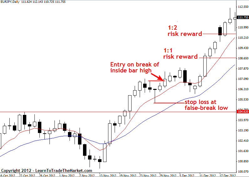 In the chart below, we see an example of how many traders get into trouble by being too involved with their trades. As the market retraced back toward the entry point of the pin bar sell signal, emotional traders would have probably exited for a very small profit or near breakeven because they felt “scared” or “nervous” that they might lose money on the trade.